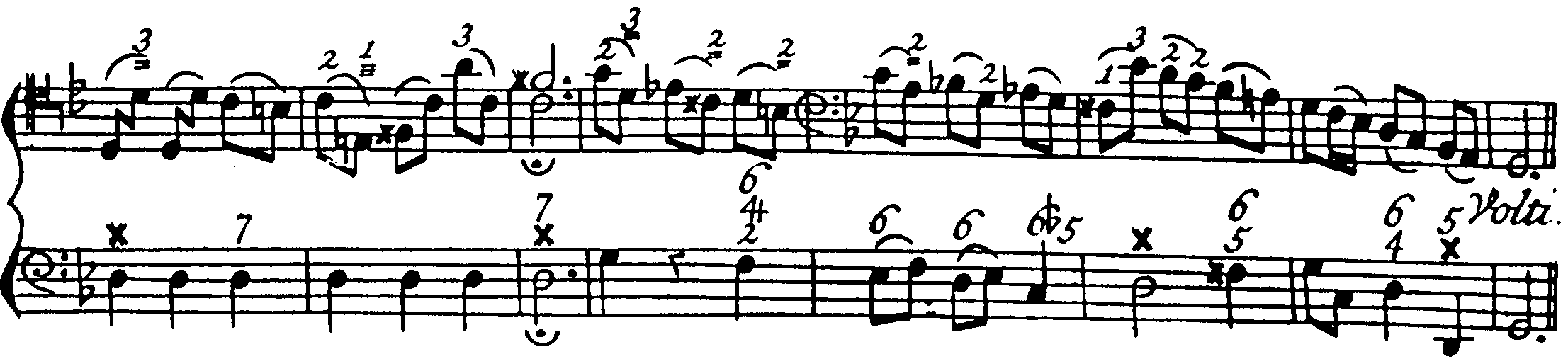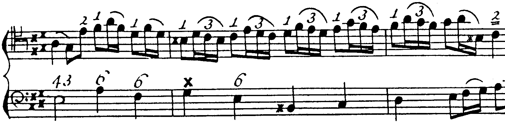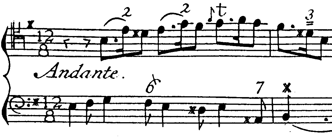 J.H. Klein Opus 4 pg. 16: Sonate 3 deel 2 (Andante) maat 1.Alternatief zonder portamento: 143 143 232.